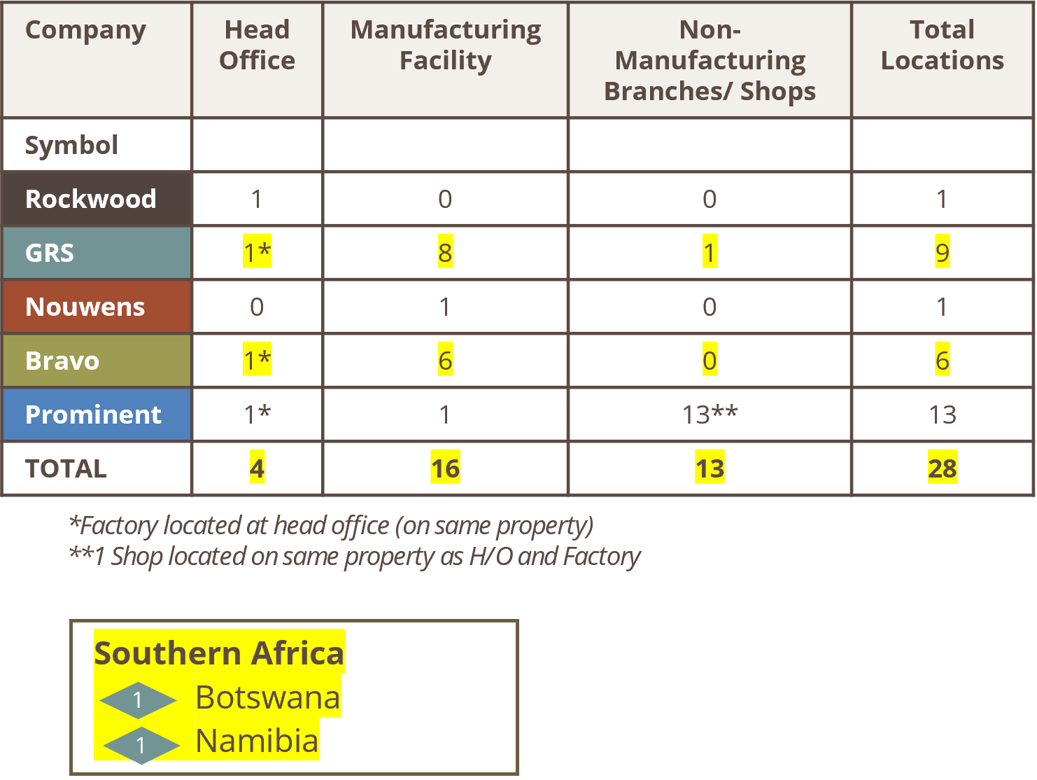 We are proud of our diverse portfolio of companies, which includes Bravo Sleep, Bravo Lounge, Nouwens Carpets, Global Roofing Solutions, Prominent Paints, and Welfit Oddy. Together, our group employs more than 3,300 dedicated people across 30 operating locations in Southern Africa, including South Africa, Botswana, and Namibia.
